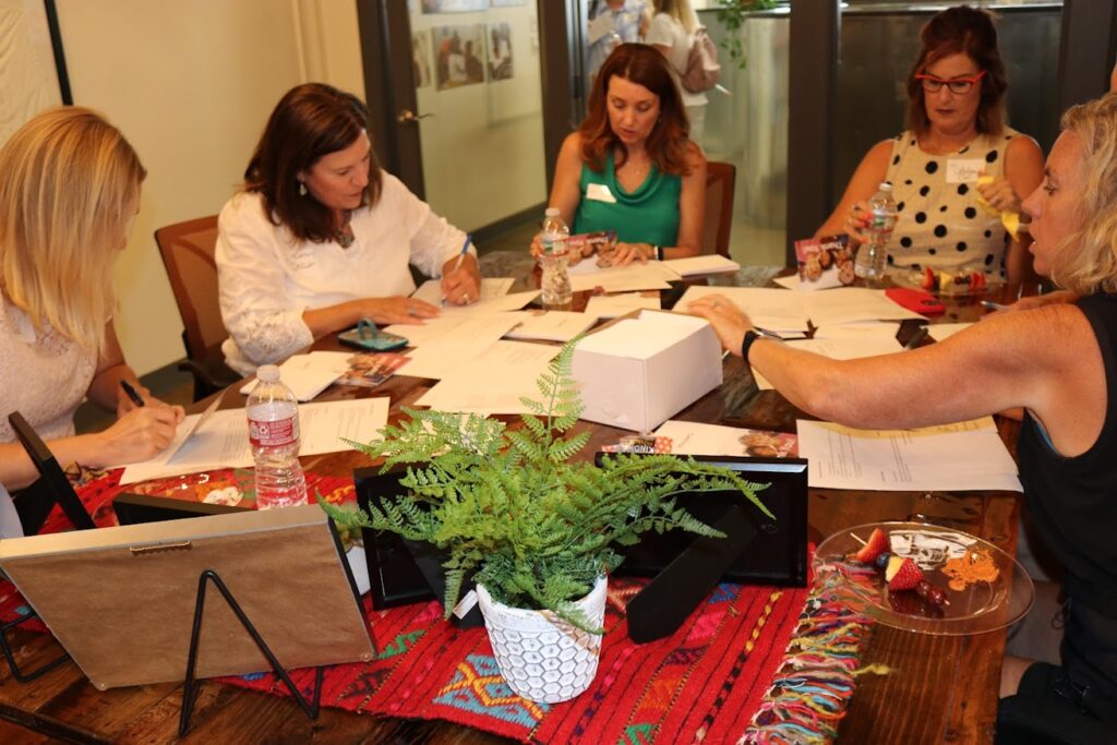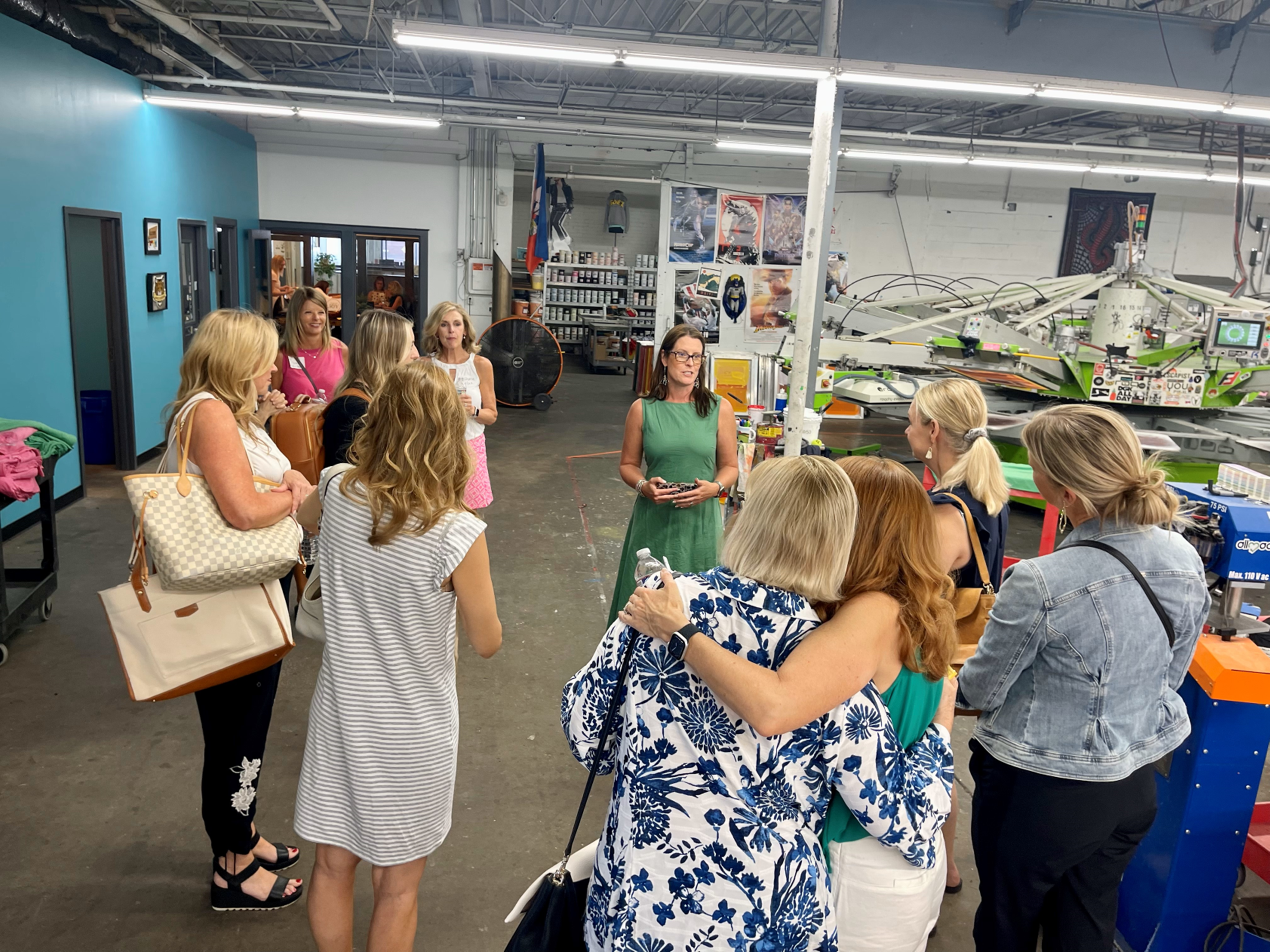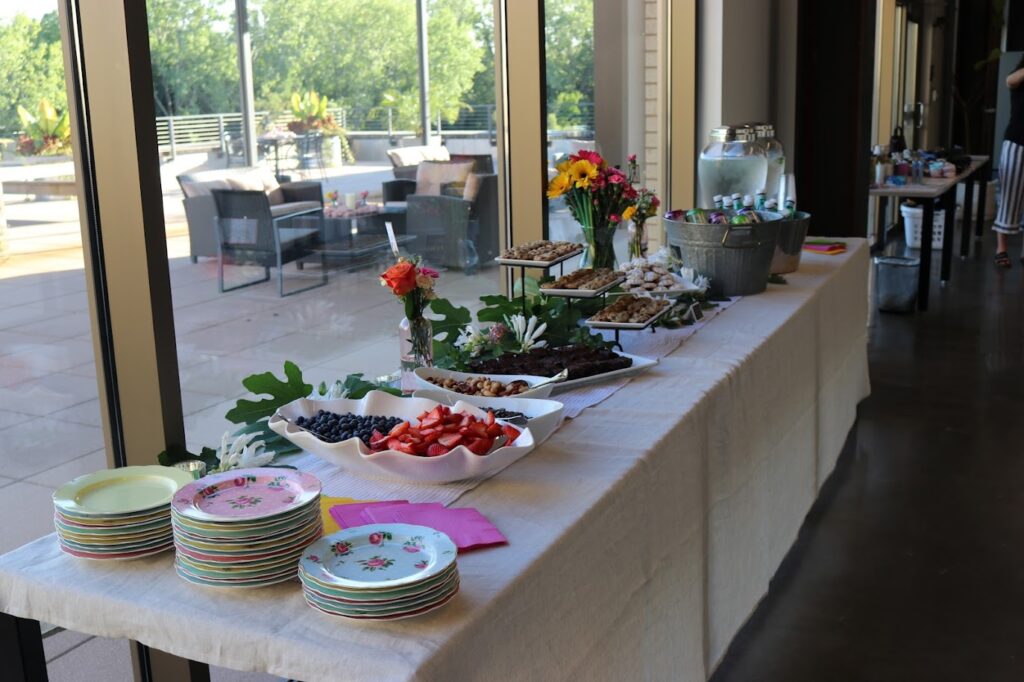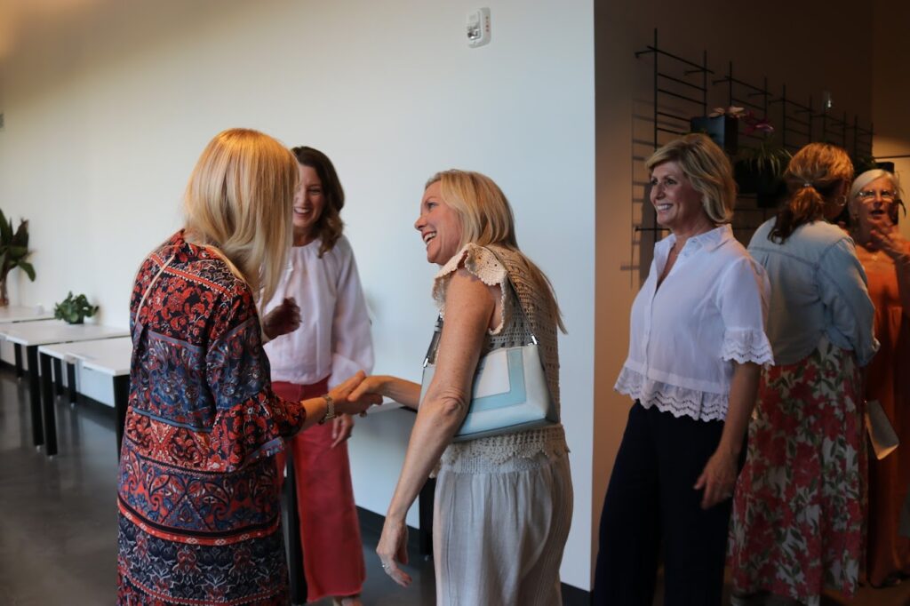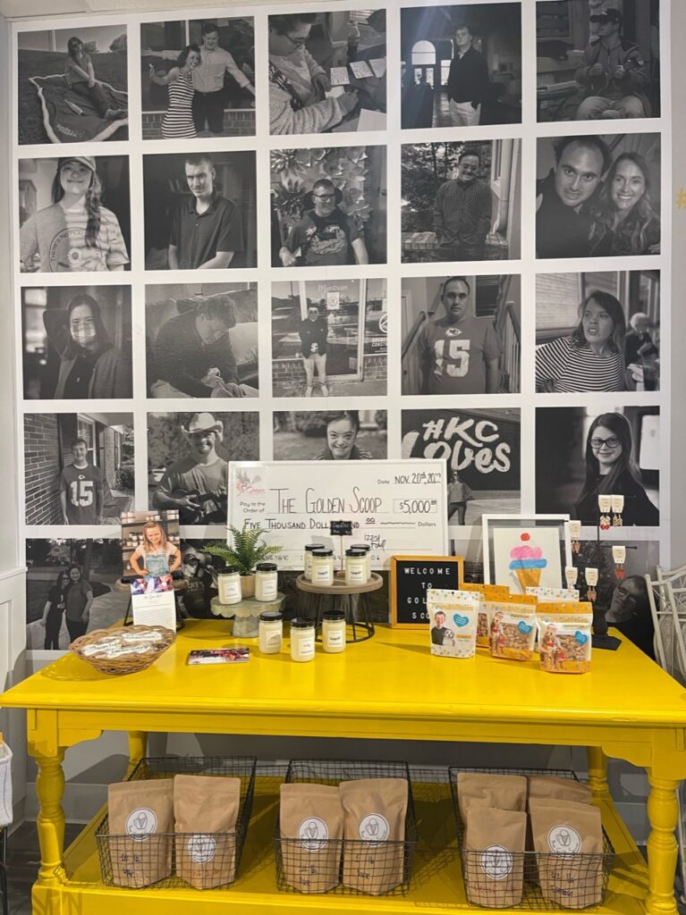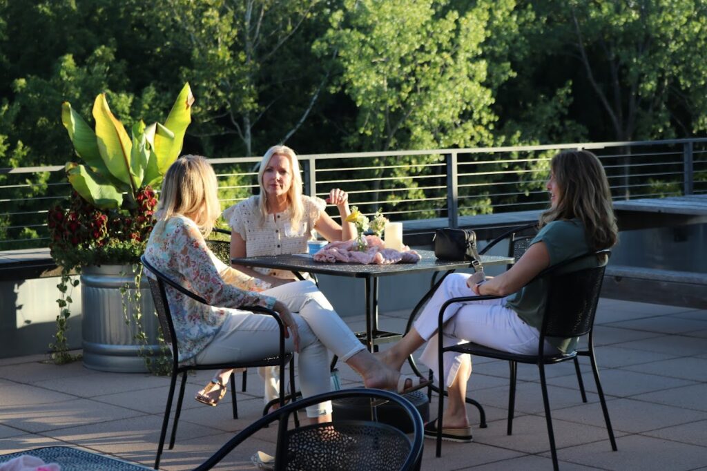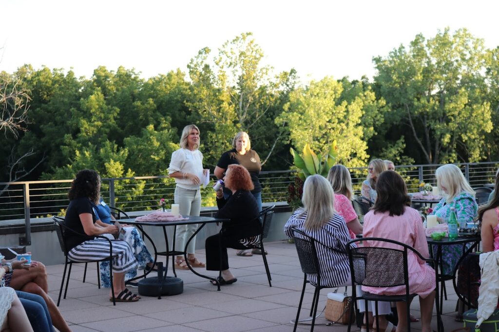 Our Summer Social was the perfect Girls Night Out! We enjoyed a beautiful evening on the rooftop patio of Compass Realty (thanks to Shannon Brimacombe!) with delicious treats and drinks. AND yummy ice cream from our sweet friends at The Golden Scoop! We also had the chance to hear more about Single Mom KC. They were one of our recent grant recipients and provide a wonderful “Clothed with Dignity” boutique to serve local single moms. Thanks to the generosity of our guests, we filled two cars full of needed items for their toiletry collection.